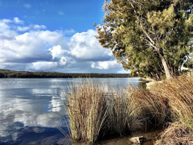 I used to drift across the lake on a lilo. The water was so clear I could watch the fish and sea life, right down to the crabs scuttling along the sand, in and out of the little seaweed forests. The wildlife is friendly. Sometimes its hard to get a photo, with kangaroos sticking their noses into the lens and rainbow lorikeets trying to land on your camera. The beach is flanked with sand dunes and unspoiled native bush. It’s a special place to wile away a few days kayaking, swimming, fishing, walking, and dining on the local food.