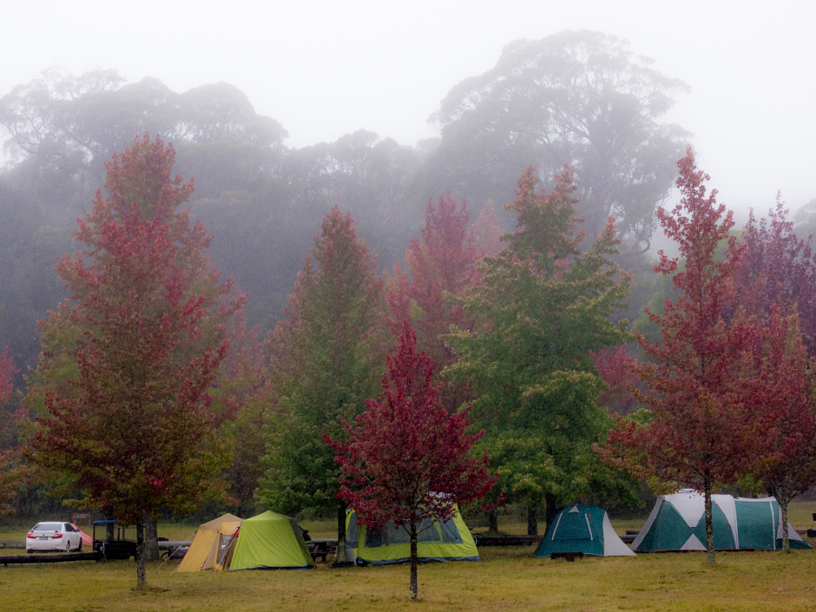 Cathedral Reserve is a pretty council run campground just outside the picturesque town of Mount Wilson – full of color in autumn and full of blooms in spring. Pull into the grassed area by the road and follow the road towards the trees. (See the map below). The campground is a flat grassy area nestled in the gum trees. Just ten minutes hike from the campground is the Cathedral of Ferns. This is a 30 minute circuit sometimes shrouded in mist or on summer evenings, aglow with fire flies.