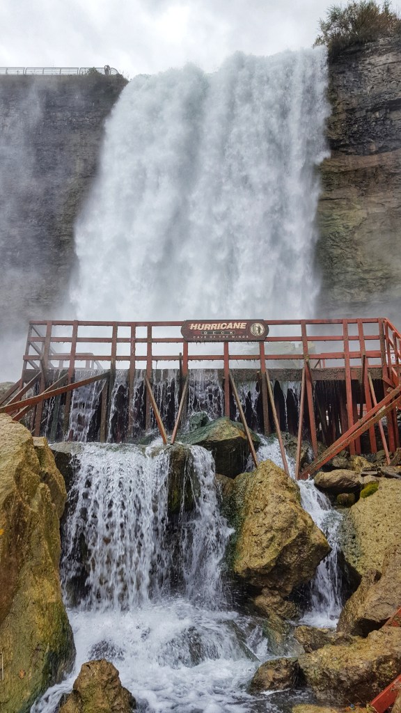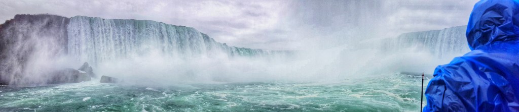 I wanted to film our adventure but I had to put my camera away when we reached the mist because it wasn’t like mist at all. It was torrential horizontal rain. It felt like being blasted in the face with a fireman’s hose. And as the water seeped into our plastic ponchos and trickled down our necks, and as the little boat rocked and rolled on the churning waters, and as we gripped the railing for dear life, the captain announced “This, ladies and gentleman, is Niagara Falls.”