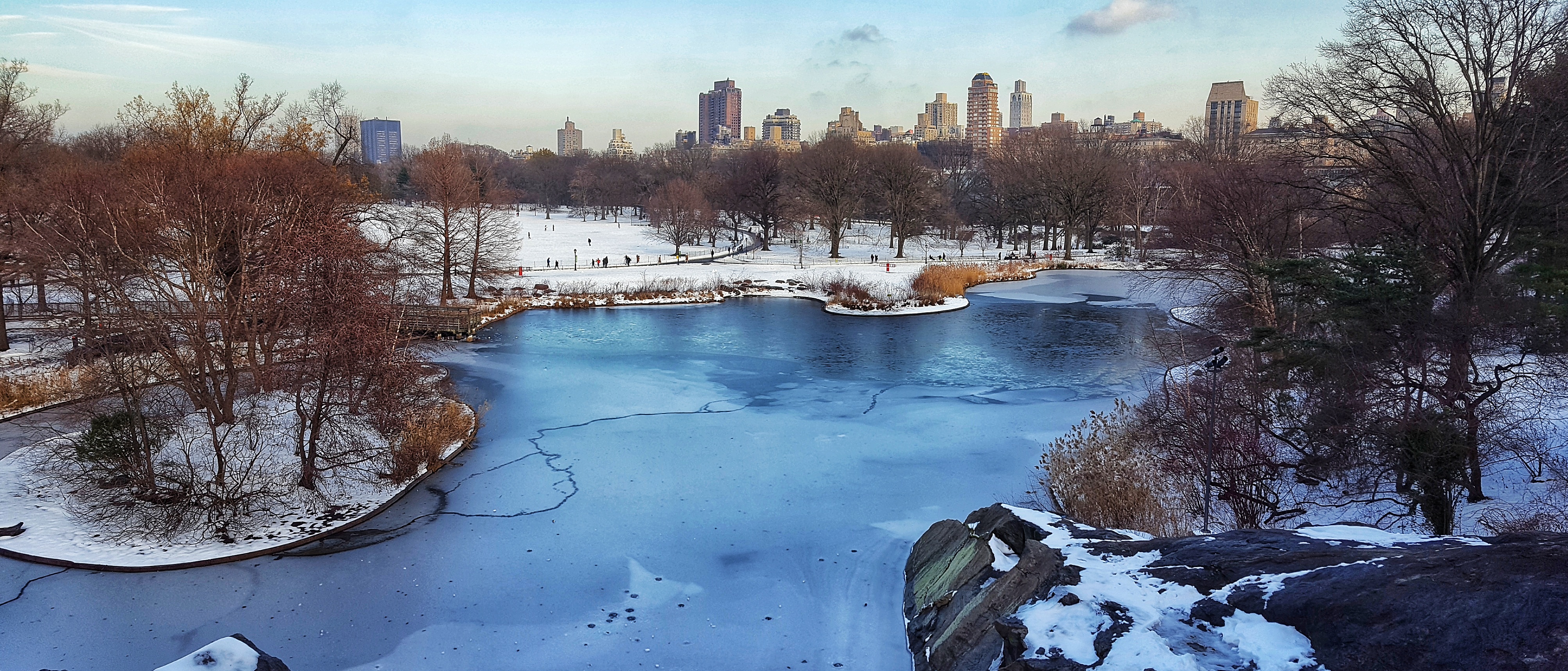 Frozen lake viewed from the Belvedere Castle, Central Park, New York.